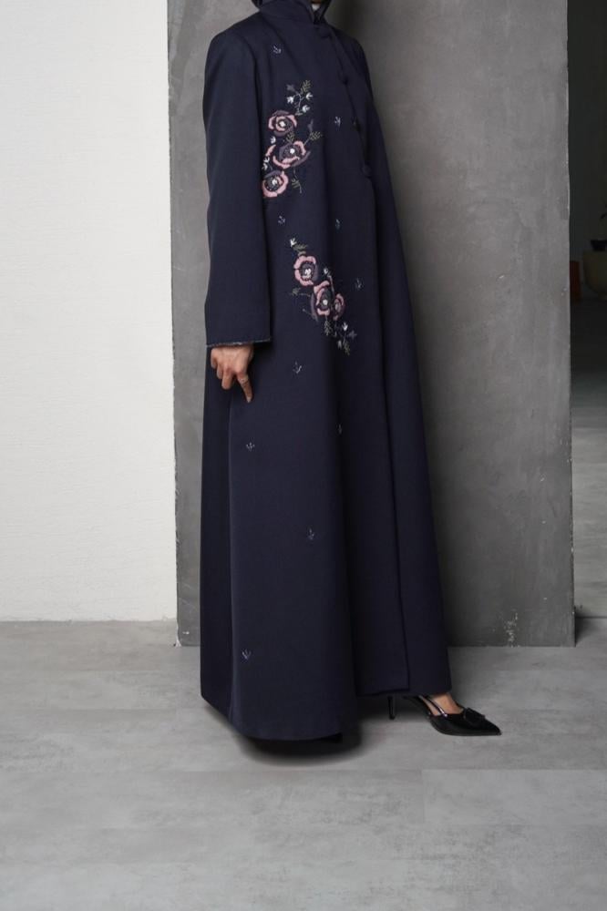 بليزر عباية أنيقة بقصة عصرية بقماش ليمار المستورد باللون الكحلي مطرزه بشك يدوي مبطنة بقماش البونجه مع خياطة داخلية وجيوب امامية و فتحة من الخلف و كتافات اسفنج