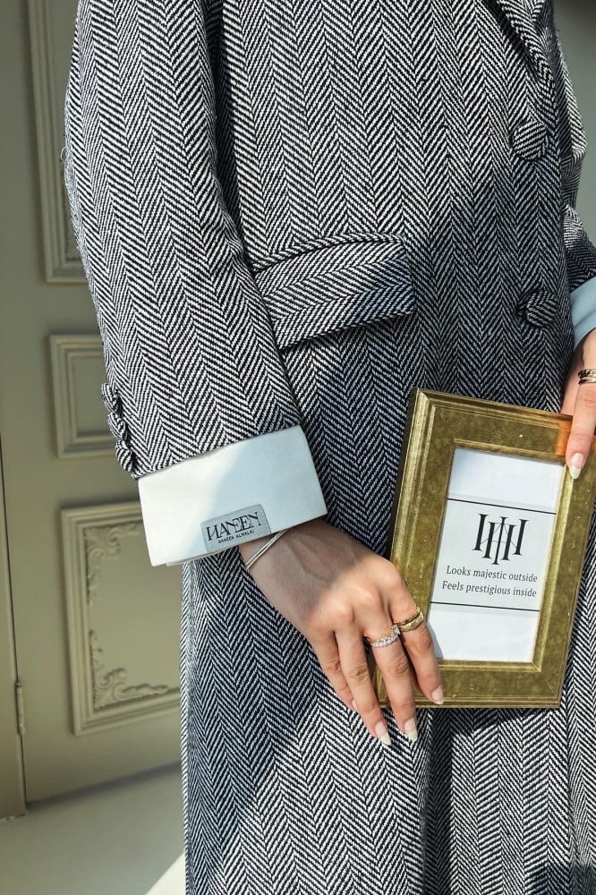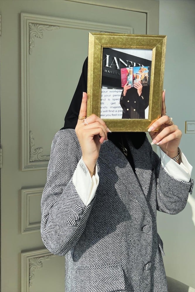 بليزر عباية أنيقة بقصة عصرية بقماش الصوف مع خياطة داخلية وجيوب امامية و فتحة من الخلف و كتافات اسفنج