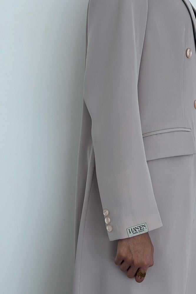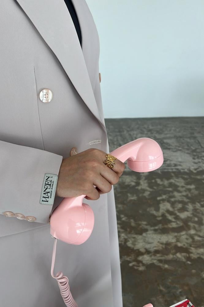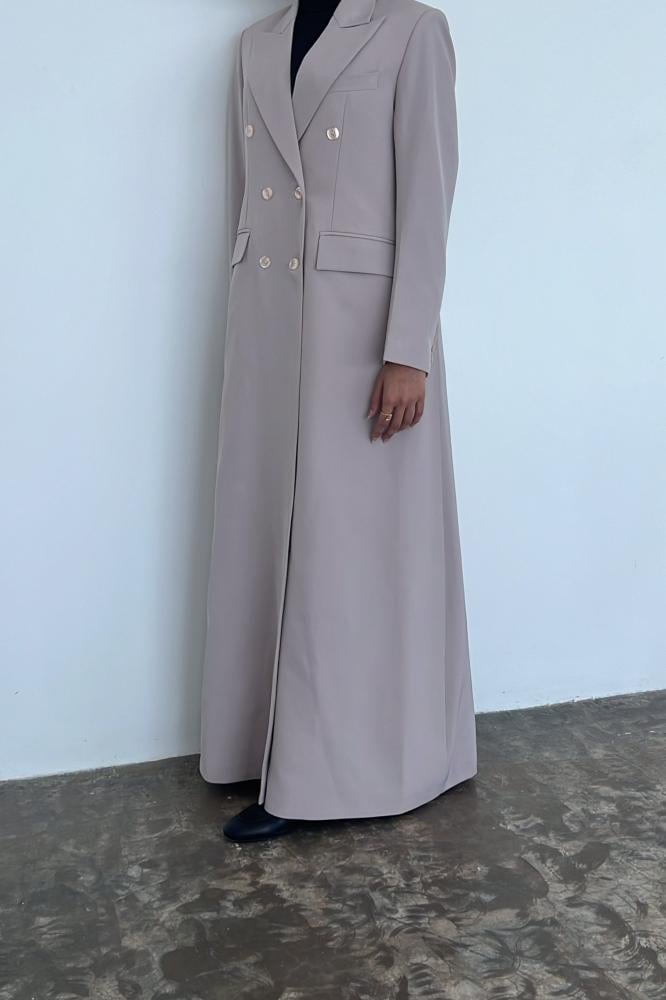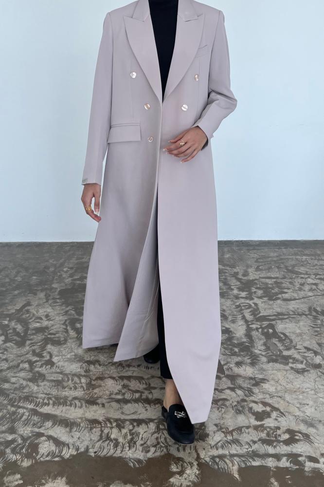 بليزر عباية أنيقة بقصة عصرية بقماش الكريب باللون الوردي الفاتح مبطنة بقماش البونجه مع خياطة داخلية وجيوب امامية و فتحة من الخلف و كتافات اسفنج